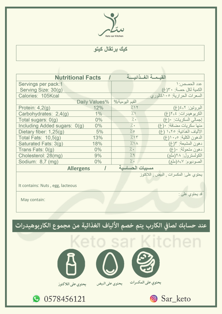 اطلب كيك برتقال كيتو من متجر كيتو سار وتمتع بطعمها اللذيذ دون زيادة الوزن.