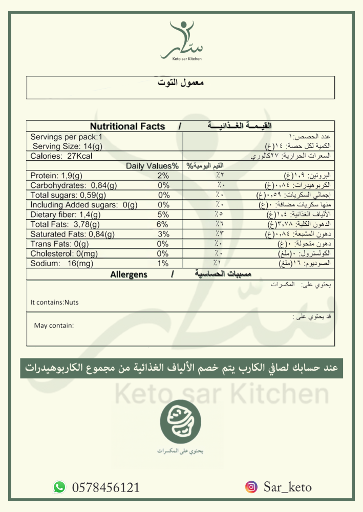 - يحتوي على نسبة دهون مفيدة للجسم ومناسبة لنظام الكيتو.