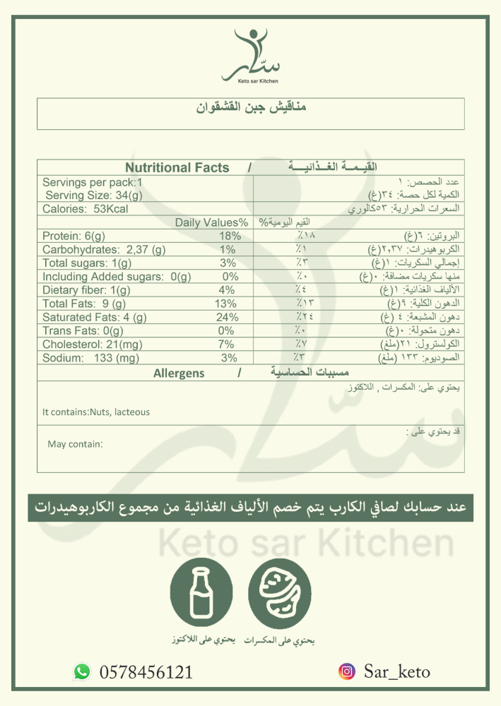 - منخفضة الكربوهيدرات ومناسبة لنظام الكيتو دايت.